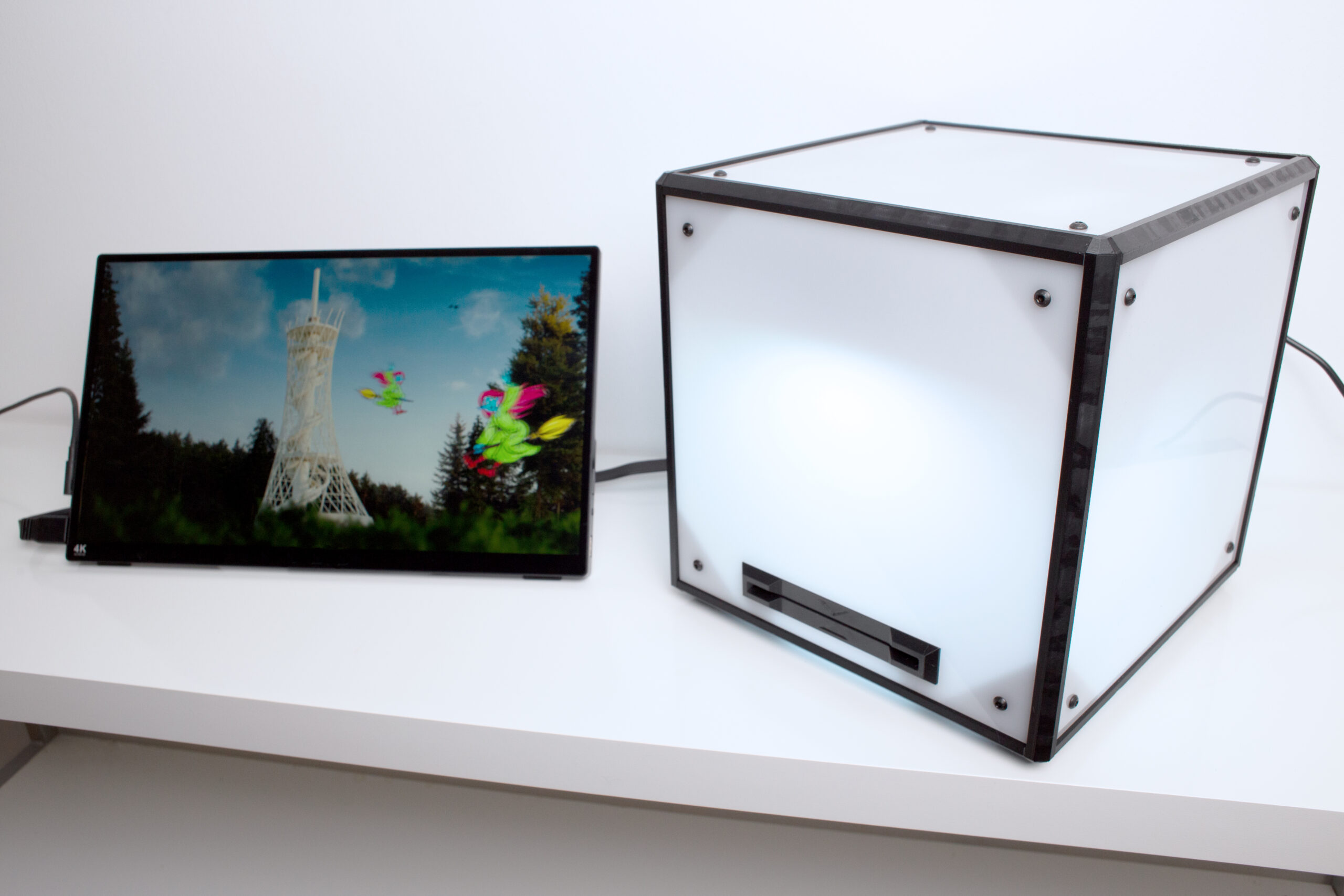 Das Design des Postkartenscanners ist praktisch, kompakt und flexibel. So lässt er sich problemlos in unterschiedliche Räume und Umgebungen integrieren. Er kann wahlweise mit eingebautem Bildschirm betrieben werden oder an einen externen Screen angeschlossen werden, je nach Anforderungen und Platz.